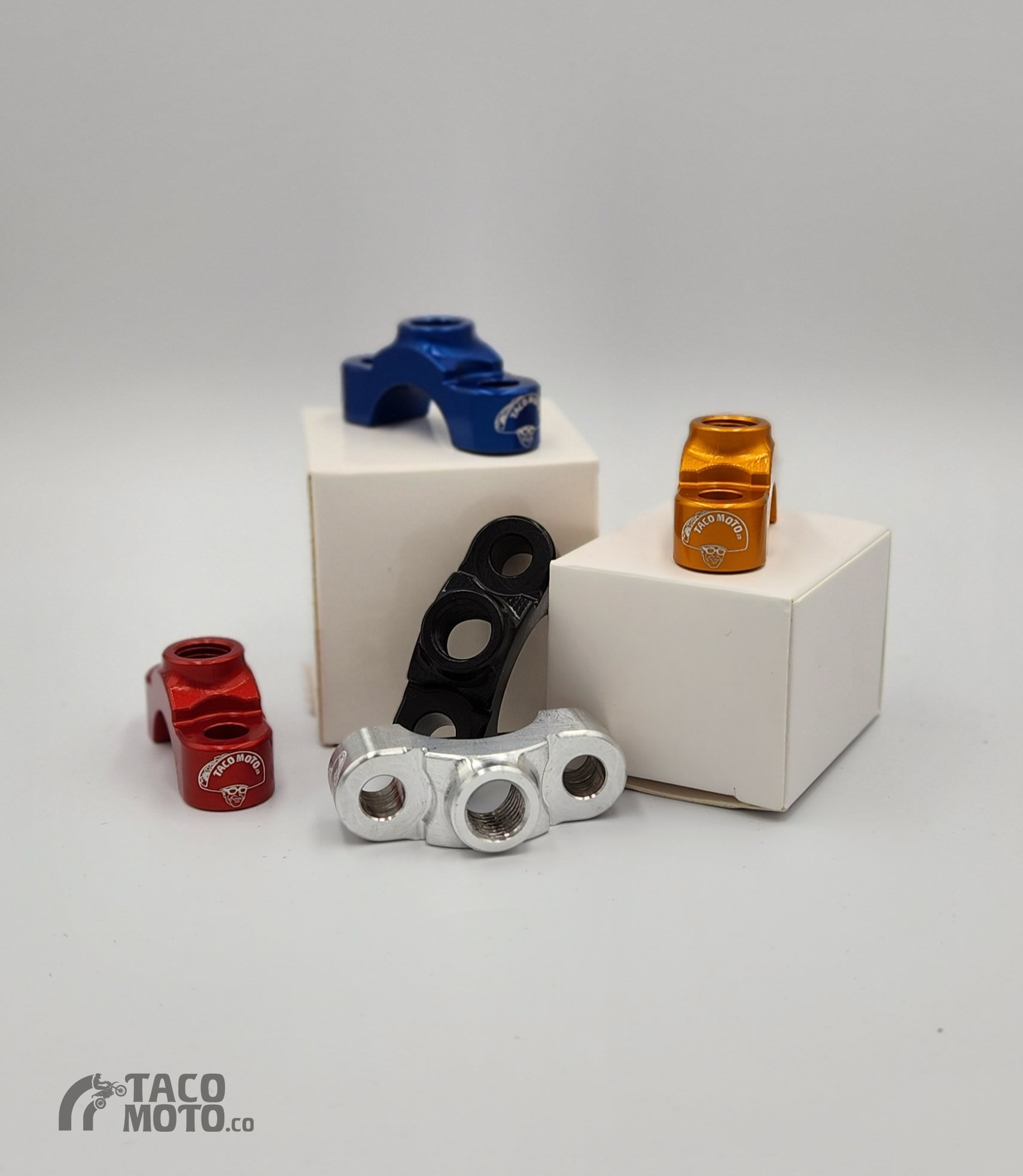 CNC machined from 6061 billet aluminum and anodized in vibrant colors with laser etching of the Taco Hat logo these are an essential upgrade for riders running mirrors on their bikes.