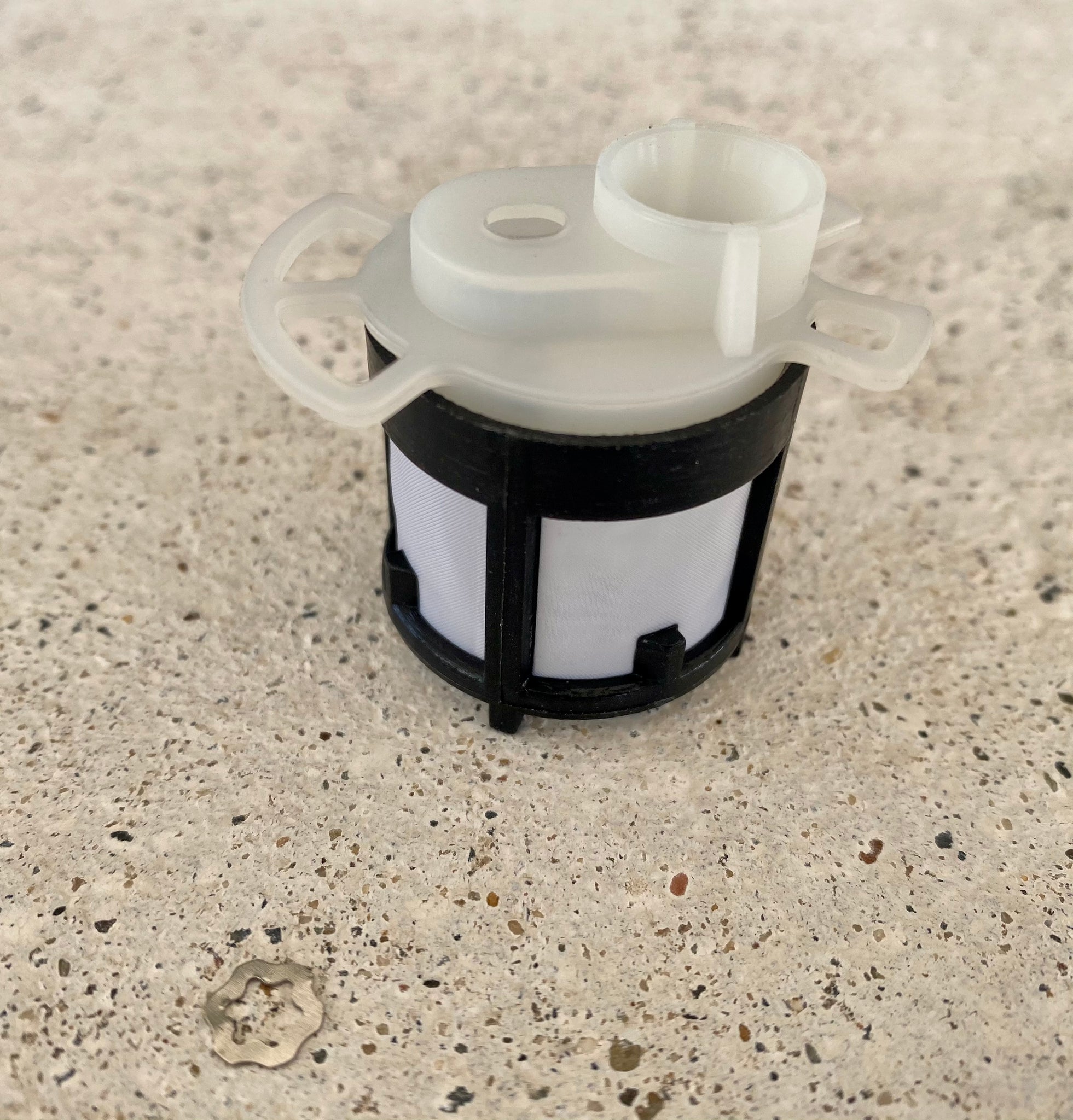 Includes new fine mesh 60 micron (same as stock) strainer, base ,and locking star tab.