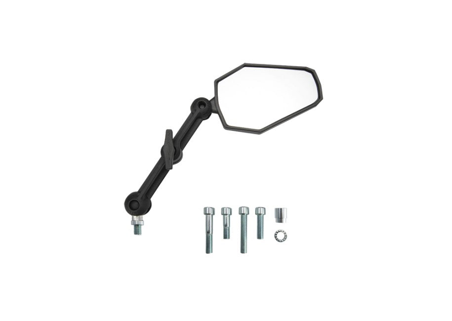The Adventure Kit is perfect for adventure and touring bikes where the mirrors are kept up most of the time. This mirror offers the widest field of view, and is ideal for riding paved and dirt roads.