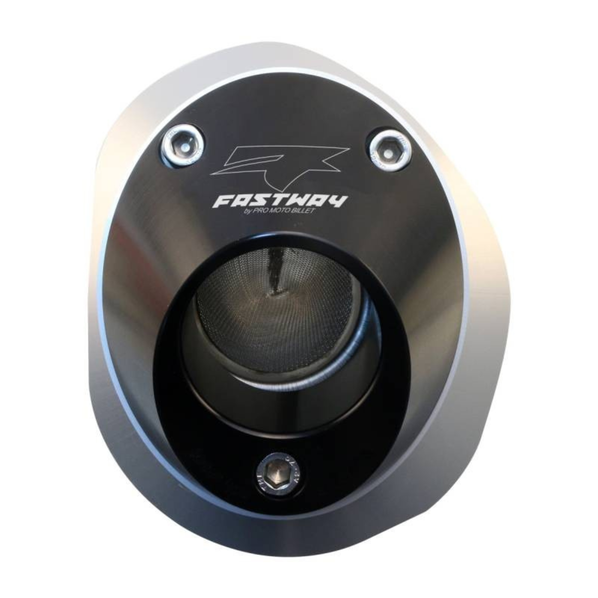 Fastway by Pro Moto Billet’s Spark Arrestor is a fully billet CNC machined 6061 billet aluminum end cap with a U.S.F.S. spark arrestor..