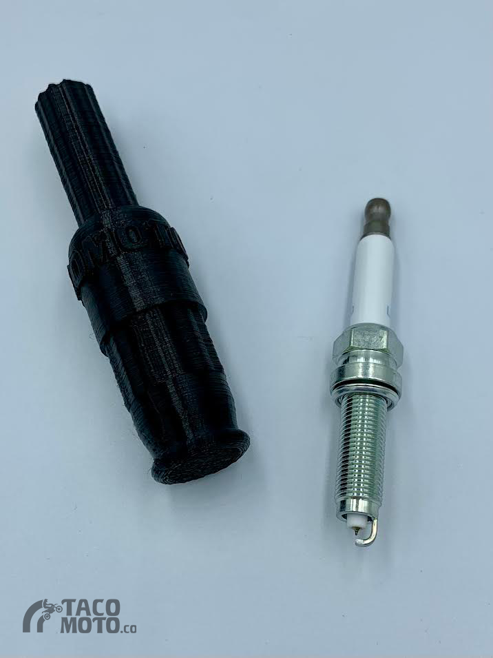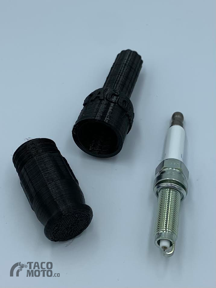 Carry a spare spark plug in your pack or on the bike in this rugged, water tight, drop safe 3d printed plug holder
